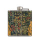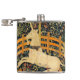 Flask featuring the mediaeval tapestry The Unicorn in Captivity (1495-1505). The seventh tapestry in The Unicorn Tapestries—also known as The Unicorn Rests in a Garden—shows a white unicorn with a blue collar sitting inside a fence. Green grass and beautiful flowers surround the unicorn. A fantastic gift for mediaeval art collectors and fantasy lovers!