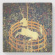 Stone Coaster featuring the mediaeval tapestry The Unicorn in Captivity (1495-1505). The seventh tapestry in The Unicorn Tapestries—also known as The Unicorn Rests in a Garden—shows a white unicorn with a blue collar sitting inside a fence. Green grass and beautiful flowers surround the unicorn. A fantastic gift for mediaeval art collectors and fantasy lovers!