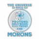 Are you sure the universe is full of idiots? Are there too many morons for your taste? Then this is a great product for you or to give to friends, family and colleagues. The Universe is made of Protons, Neutrons, Electrons and Morons.