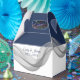 An image of a Silver coloured veil draped across the front and sides of this Sapphire Blue and White favour box with handles. Plain back and has the newlyweds personalised names mingle in on the front with the image of the veil. Sample names shown. Customise this item if desired.