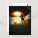 An alien visitor watches as the UFO lifts off