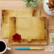 THE VITRUVIAN MAN RED WAX SEAL MONOGRAM ,PARCHMENT ENVELOPE