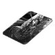 A black and white photograph of a duck sitting on a river bank looking out towards the water.