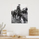 Vintage photo of cowboy on horse stopping for a drink.