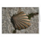 Photograph of a bronze scallop marker on "The Way of St. James", an historic pilgrimage route to the Cathedral of Santiago de Compostela in Galicia, Spain where the remains of the apostle St. James are believed to be buried.