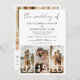 The Wedding of Modern Elegant Four (4) Photo Collage and Large Date QR code Minimalist Wedding Invitation. The Wedding Invitation cards contain a modern typography that are elegant, simple and modern to use after you minimalist simple wedding day celebration.