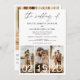 The Wedding of Modern Elegant Four (4) Photo Collage and Large Date QR code Minimalist Wedding Invitation. The Wedding Invitation cards contain a modern typography that are elegant, simple and modern to use after you minimalist simple wedding day celebration.