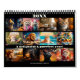 A funny calendar with whimsical and absurd illustrations of cats in different styles. A surreal fantasy art calendar for cat lovers.