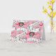 This complex and whimsical repeating pattern captures the joyous, heartwarming celebration of the Whos of Whoville after their Christmas is saved! The design features long, curved dining tables set with tall, whimsical candlesticks, towering piles of food, and elaborate tureens. The tiny Whos are seated and serving, dressed in their holiday best, celebrating beneath a festive green wreath proclaiming "MERRY MERRY." Set against a playful pink background, this detailed print is bursting with the classic charm and chaotic energy of a genuine Dr. Seuss Christmas!