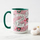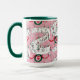 This complex and whimsical repeating pattern captures the joyous, heartwarming celebration of the Whos of Whoville after their Christmas is saved! The design features long, curved dining tables set with tall, whimsical candlesticks, towering piles of food, and elaborate tureens. The tiny Whos are seated and serving, dressed in their holiday best, celebrating beneath a festive green wreath proclaiming "MERRY MERRY." Set against a playful pink background, this detailed print is bursting with the classic charm and chaotic energy of a genuine Dr. Seuss Christmas!