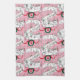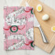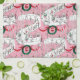 This complex and whimsical repeating pattern captures the joyous, heartwarming celebration of the Whos of Whoville after their Christmas is saved! The design features long, curved dining tables set with tall, whimsical candlesticks, towering piles of food, and elaborate tureens. The tiny Whos are seated and serving, dressed in their holiday best, celebrating beneath a festive green wreath proclaiming "MERRY MERRY." Set against a playful pink background, this detailed print is bursting with the classic charm and chaotic energy of a genuine Dr. Seuss Christmas!