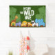 Easily personalise this safari banner with your child's name, complete with a giraffe, zebra, hippo, tiger, lion, elephant and jungle leaves.