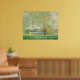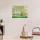 This beautiful painting by Claude Monet features a scene loosely painted with a colour palette is almost completely dominated by cool tones of spring, sage, celery, and kelly green, and steel and sea blue.