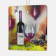 Colorful AI generated digital art ceramic ornament "The Wine Tasting" features a variety of wine glasses and red wine bottle. Personalize with name or special message on back