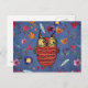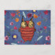 The wise bird owl in flower garden postcard