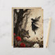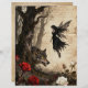 An illustration of a fairy tale, with a big wolf and a small, dark fairy in a mysterious forest with red and white roses blooming makes this scrapbook paper perfect for anyone who loves fantasy and fairy tales. The back is a similar color to the front, with a grungey paper texture added, and faded, illegible text, as if from an ancient journal. Very Gothic and beautiful.