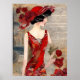 A woman in a red dress mixed media collage using vintage ephemera AI generated art