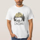 Beautiful t-shirt design featuring a bear walking in the forest and the quote "The woods are calling". Can be used on t-shirts, hoodies, mugs, posters and any other merchandise.