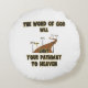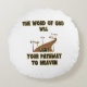 This round pillow design has a kapsalon condensed print font with black letters tan outline displaying the phrase "The Word Of God Will Light Your Pathway To Heaven” with a collection of street light along the pathway plus a sign that displays the word Heaven point down the pathway in this faith based bible theme. This pillow is made with high quality fabric our pillows are soft and wrinkle-free the cover is machine washable.