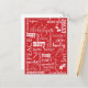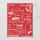 The words of Christmas in various typefaces make a collage on this postcard. Christmas icons are dispersed in between the words. Add your own holiday message on the back. Available in alternate colours with matching products.