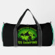 This black duffle bag inspires adventure with its vibrant green design featuring a hiker against a mountainous landscape and the motivational phrase "THE WORLD IS YOURS TO DISCOVER GO CAMPING." It's perfect for outdoor enthusiasts, travelers, and anyone ready to explore new horizons. Edit colour of the bag caps and body in the Design tool to your favored colours.