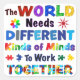 Inspirational quote of “The WORLD Needs Different Kinds of Minds To Work Together” to raise awareness about people with autistic spectrum disorders and Asperger's syndrome throughout the world.