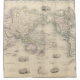 The World on Mercator's Projection in outline colour with some land masses in full colour. Surrounded by drawings of cities, and sights such as the Pyramids at Giza and Niagara Falls. British Colonies are highlighted in red and steam routes to the Colonies in blue.