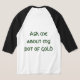 I bought the Men's Basic 3/4 Sleeve Raglan T-Shirt, White/Navy. It arrived on time for a gift and is of a great quality and fits perfectly! So cute! Zazzle has done it again! The printing was clear and filled in solidly.