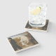 The coasters are gorgeous, a quality feel and heavy weight. They look like a precious archeological find. A rustic stone juxtaposed with a modern floral black and white print. I like the way the print goes slightly imperfect on the cut stone edges giving them a kind-of natural beauty.