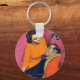 Artist:Morgan Kane | A man is lounging in a bright red chair reading the newspaper, and a woman is sitting on the arm