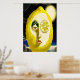 A yellow lemon face with eyes and a lemon slice over the one eye, a nose and a mouth. This is a AI generated art.