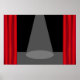 A graphic illustration of a theatre stage with a spot light and red curtain on a variety of products. Original artwork: Copyright Charmaine Paulson 5/13/08