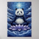 Imagine a serene scene where a majestic panda bear is sitting in the middle of a beautiful lotus flower, surrounded by a blue sky. The panda bear appears to be meditating, with its eyes closed, as it
