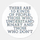If you're a real geek, you'll get the meaning of this apparently nonsensical statement. Non-geeks, on the other hand, will read it...ponder it for a moment...and then look at you with puzzled faces. "There are 10 kinds of people: Those who understand binary and those who don't."
