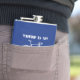 The flask itself is fine. It’s a cheap flask, obviously bought in bulk, however am prepared to overlook that. Given that it is a personalized item, I would have liked to have seen gift boxing instead of the generic packaging. Terrible printing, and/or quality. It’s a cheap, tacky vinyl. It is not cut straight and is also applied in a way that it is overhanging the bottom, causing the glue to catch on items and it will eventually roll and tear, damaging the wrap.