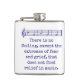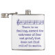 The flask itself is fine. It’s a cheap flask, obviously bought in bulk, however am prepared to overlook that. Given that it is a personalized item, I would have liked to have seen gift boxing instead of the generic packaging. Terrible printing, and/or quality. It’s a cheap, tacky vinyl. It is not cut straight and is also applied in a way that it is overhanging the bottom, causing the glue to catch on items and it will eventually roll and tear, damaging the wrap.