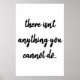 There isn't anything | Black Text Quote Poster features the quote "There isn't anything you cannot do" against a white background colour that can be changed or left as is.
