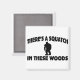 Infamous funny quote, “There’s A Squatch In These Woods,” using the shortened Bigfoot nickname, all in simple black lettering with a Sasquatch silhouette in between the phrase.