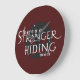 Purchased this online and it got delivered quickly. It was a present for my Dads 70th birthday. He loves clocks so decided to get him one with something written on it. Battery went in and it started working straight away. Dads had no issues with it. Printing was just how it came up online.
