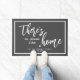 This doormat features white text that reads: "There's no place like home" along with a small heart and your custom name, established date or other text.