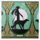 Theresa in Aqua & Olive - Art Deco Lady with Dog Ceramic Tile
