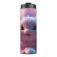 A charming and delightful close-up of a small animal set against a dreamy background of soft pink and purple hues. The image captures intricate details in the animal's fur and its bright, shiny eyes, giving it an enchanting and endearing appearance. The gentle and soothing lighting adds a magical touch, making the creature seem like part of a beautiful pink dream