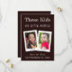 In the upper part, above the photos, there is the message "These kids are getting married" in white hand letters, with the first words bigger, like written in chalk, and in the lower part, under the childhood photos, there are the words "Save the Date" and the date, also in white chalk hand letters. The background (and the back) is black.