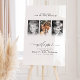 Modern Typography: A mix of clean sans-serif and elegant romantic calligraphy script. Sturdy Material: perfect for displaying on an easel (easel not included). Custom Text: Personalized with the couple's names, photos, event date, and city.