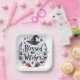 These whimsical party plates feature a fun floral watercolor print with the words Blessed Be Witches.