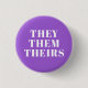 They, Them, Theirs Gender Pronouns Lgbtq purple and white button, pin