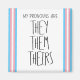 This magnet lets everyone know your pronouns - They, Them, Theirs.
