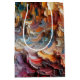 Vibrant colours blend in a dynamic abstract composition creating a sense of movement and depth