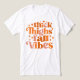 This vibrant and playful fall design features the fun and confident phrase "Thick Thighs Fall Vibes" in a bold, retro-inspired font. The text is arranged in a dynamic, stacked layout, with each word filled in warm autumn hues, including shades of orange, peach, and soft pink. The surrounding star-like sparkles add a touch of whimsy and shine, enhancing the festive and cosy feel of the design. The typography is both bold and curvaceous, giving it a lively, vintage appeal that perfectly captures the essence of fall.