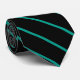 This quality striped tie is a must have every day accessory for men. The classic stripy design on a black background can be worn for work or special occasions. The greenish blue stripes on this tie are spaced evenly apart to give a classy overall effect that isn't too busy and is easy to wear. A nice tie for all ages and all occasions.